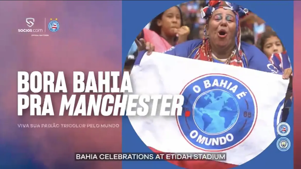 O evento “Hoje é dia de Bahia em Manchester” ocorrerá em 2 de setembro, simultaneamente ao jogo entre Manchester City e Fulham pela Premier League.