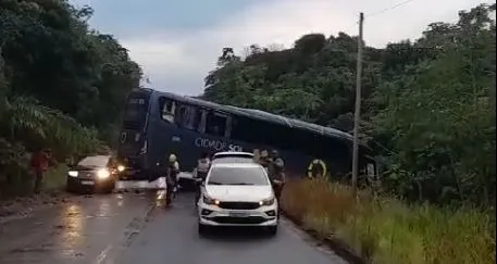 Um ônibus desgovernado bateu em árvores e ficou atravessado na Ladeira das Pedrinhas, trecho da estrada que dá acesso a Salinas da Margarida, no Recôncavo baiano. O acidente aconteceu na manhã desta segunda-feira, 04.