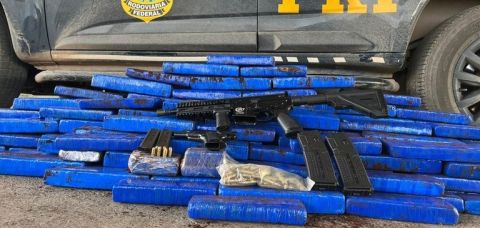 Uma abordagem da Polícia Rodoviária Federal (PRF) realizada na tarde desta segunda-feira (06), em Barreiras (BA), resultou na apreensão de 01 fuzil 556, 01 pistola 380, 84 munições calibres 556mm e 380mm, 04 carregadores de munições, 110 Kg de maconha e mais uma porção de cocaína.