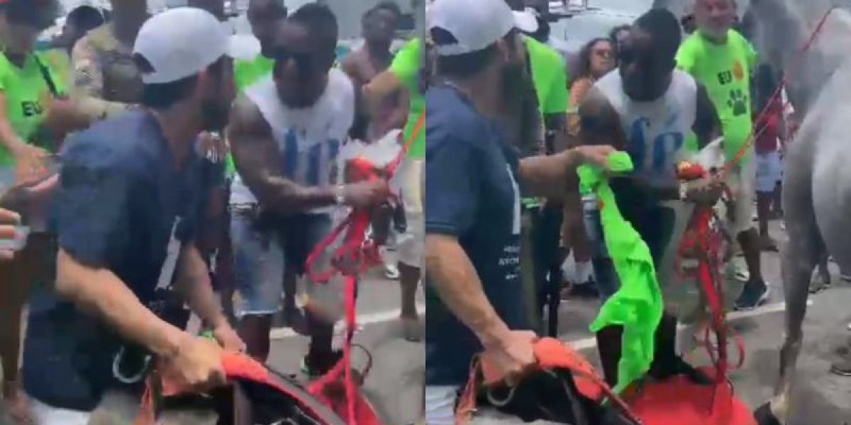 Diante da cena, Moraes, conhecido por seu ativismo em prol dos direitos dos animais, desceu do palco em que se encontrava e elevou o tom ao confrontar o rapaz que, aparentemente, estava encarregado do animal.