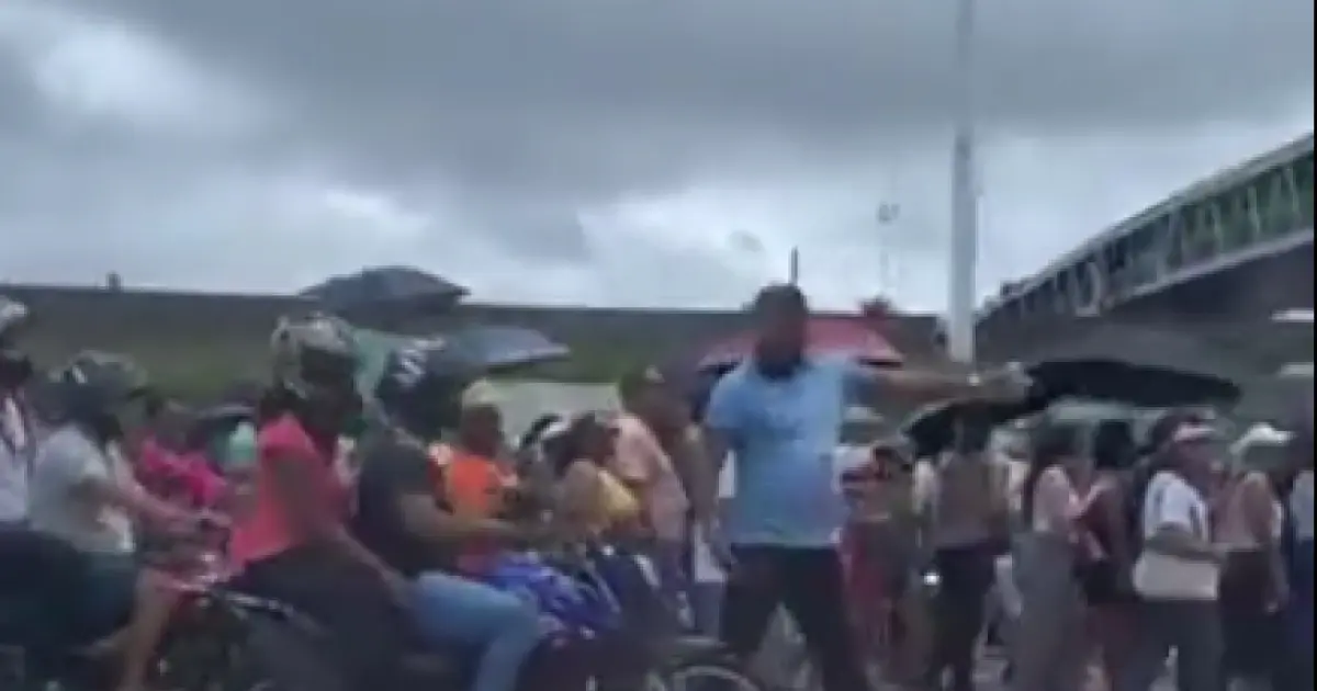 O protesto ocupa todas as faixas da via e a Polícia Militar, além de agentes da Transalvador acompanham a ação.