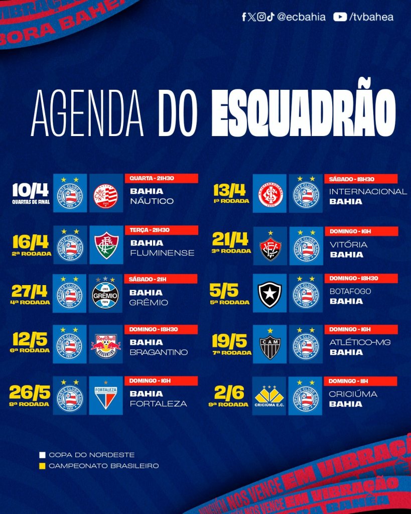 O Bahia já disputou 27 partidas oficiais no ano de 2024 e terá mais 7 confrontos num periodo de 30 dias. Agora o clube segue em sua preparação para a partida contra o Grêmio no próximo sábado (27).