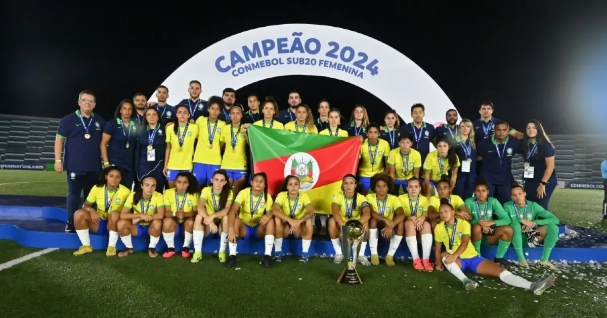 Jogadoras da Seleção Brasileira feminina sub-20 homenagearam as vítimas das chuvas e enchentes no Rio Grande do Sul. Após a cerimônia de premiação em que levantaram a taça pela conquista do decacampeonato do Sul-Americano da categoria na madrugada desta segunda-feira (6), as jovens atletas prestaram solidariedade aos gaúchos que têm sofrido com os fortes temporais desde a semana passada. A meio-campista Pyetra, que atua no Grêmio, falou da iniciativa do elenco. O Brasil bateu o Peru por 2 a 0, no Estádio Modelo Alberto Spencer, em Guayaquil (EQU), pela última rodada do hexagonal final.
