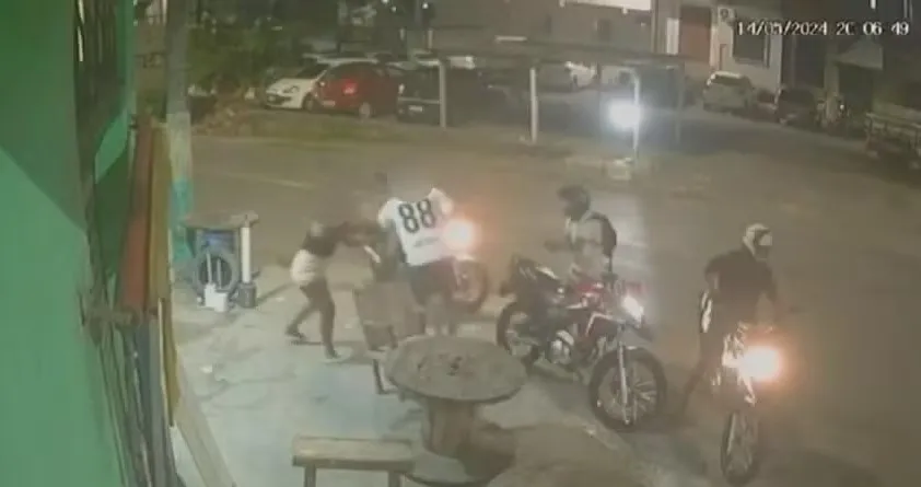Nas imagens, é possível ver que o casal parou a moto em frente a um estabelecimento, por volta das 20h. Segundos depois, três suspeitos, que estavam em duas motos diferentes, abordaram as vítimas. Pelo menos um deles estava armado.